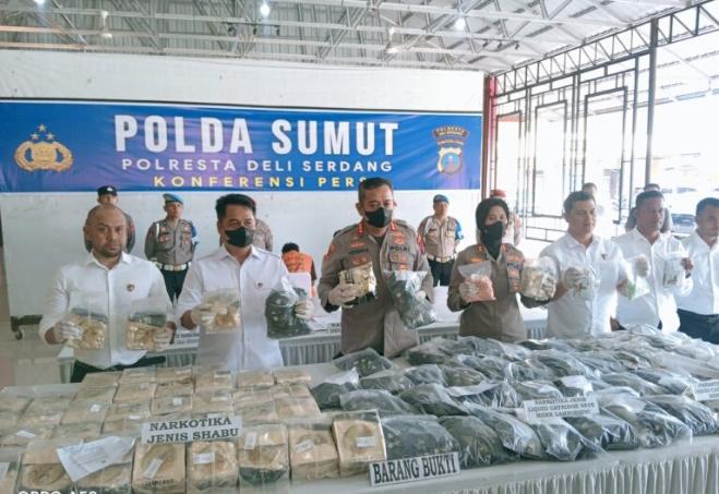Saat konferensi pers di aula terbuka Polresta Deli Serdang, Senin (27/04/26) Kasat Resnarkoba Kompol Dr. Fery Kusnadi mengatakan keberhasilan penangkapan ini berdasarkan laporan kepolisian bernomor LP/A/135/IV/2026, pengungkapan ini bermula dari informasi intelijen mengenai rencana pengiriman narkoba dari Malaysia melalui jalur laut ke Tanjung Leidong, hingga kemudian dibawa menuju Lubuk Pakam.